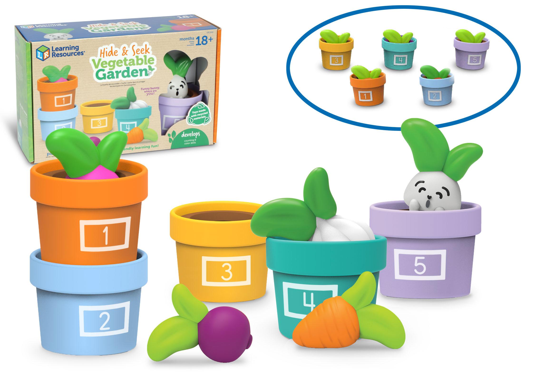On this farm, little ones grow new fine motor skills every time they pound! Kids develop hand strength, coordination, and more when they pound with this set’s kid-safe hammer. Double-sided bench features two fun themes—count numbers on one side, and discover foods on the other. Plus: pegs stay connected for no-mess fun! Bench measures 7.8”L x 2.5”W x 9.4”H.