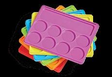 Washable ink for easy cleanup. Black pad measures 6½"L x 5"H, and each colored square (six colors) is 2"L x 2"H.