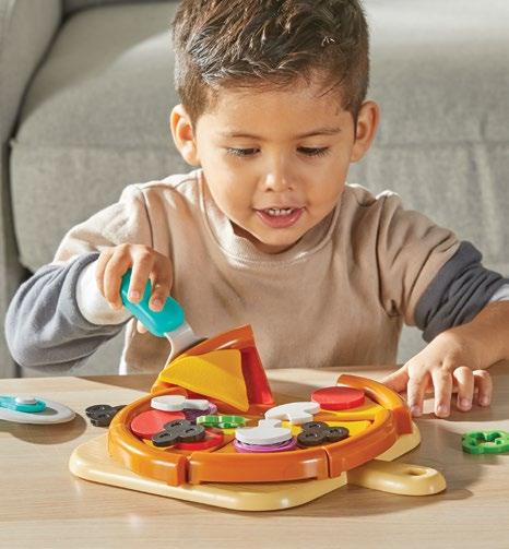 Kids strengthen fine motor skills as they stack the toppings and serve the slices with this pretend pizza set that also builds imaginative and social skills! Includes six pizza slices, 21 toppings, and pretend pizza cutter, spatula, and serving paddle. Pizza slices measure 4"L x 4"W x ¾"H.