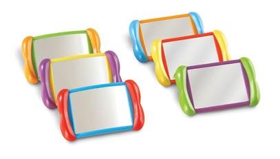 Reflections, translations, and symmetry are easy to see and understand. Set of four mirrors, each measuring 4"H x 6"L. Made of unbreakable, flexible plastic, the mirrors have rounded corners for safer use.