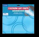 Decorate your classroom with soothing light covers. Heat-resistant fabric easily attaches to standard fluorescent ceiling lights (4' x 2') with sturdy, built-in magnets. All light covers include certificate of flame resistance.
