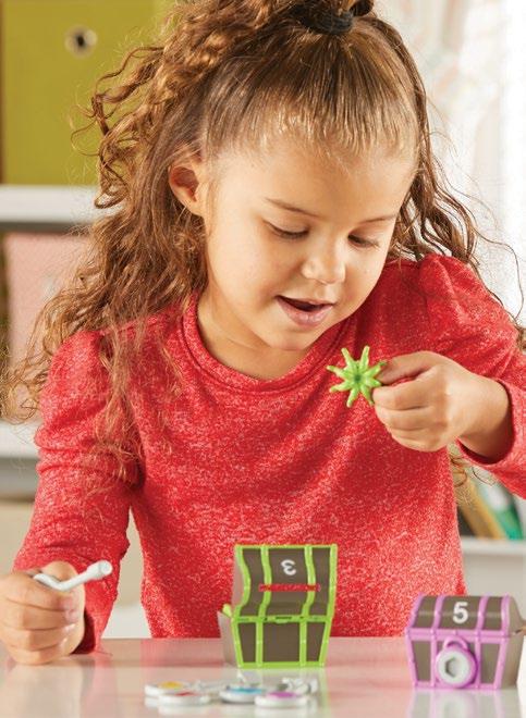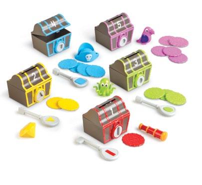 Kids strengthen number and color recognition, build fine motor skills, and kick off pretend pirate adventures as they crack open colorful numbered gems to discover the shape coins inside. Unlock the chest to build hand strength and coordination—plus, the key stays attached, so you won’t lose it! Chest measures 7¾"L x 6"W x 5¾"H.