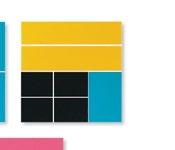 Washable ink for easy cleanup. Black pad measures 6½"L x 5"H, and each colored square (six colors) is 2"L x 2"H.