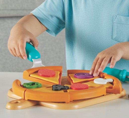 Kids strengthen fine motor skills as they stack the toppings and serve the slices with this pretend pizza set that also builds imaginative and social skills! Includes six pizza slices, 21 toppings, and pretend pizza cutter, spatula, and serving paddle. Pizza slices measure 4"L x 4"W x ¾"H. Available Fall 2026