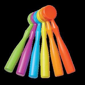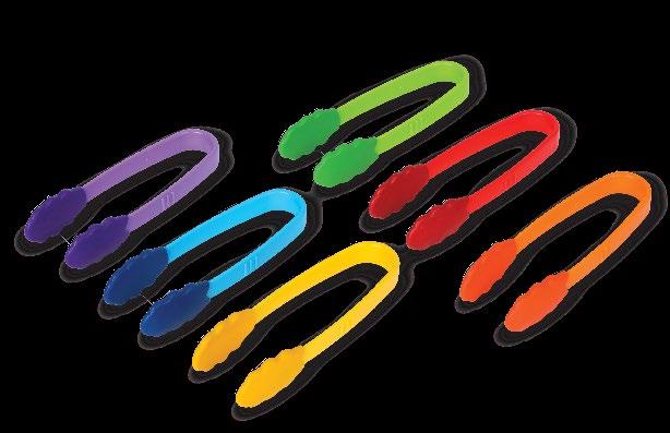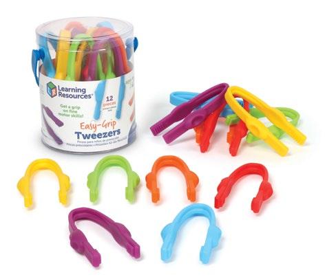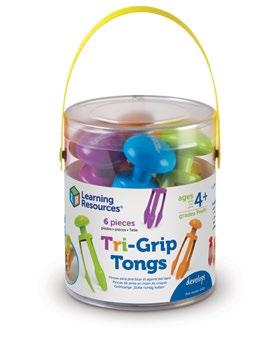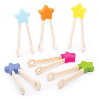 Kids build hand strength, precision, and coordination needed for writing and cutting when they squeeze these kid-sized tongs. Include six tongs in six bright colors. Tongs measure 6"L.