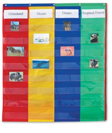 Sturdy pockets come in four colors (green, blue, purple, and red). Each pocket holds about ¾ lb. and measures 9½"L x 5½"H.