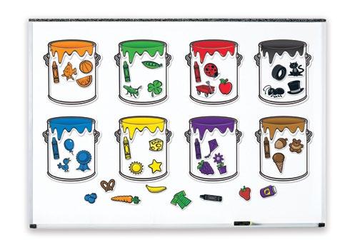Features a blank write & wipe surface on both sides. One side is also magnetic for use with magnetic letters, numbers, and tiles. Board with brushed aluminum frame measures 12"L x 9"H. Set of 10.