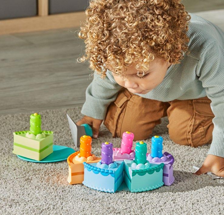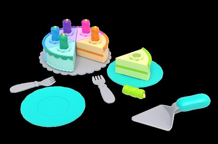 Make every day a party with new school-ready skills! Kids build color recognition and matching skills as they serve up slices of cake and match the candles for pretend birthday parties that also spark imaginations and strengthen fine motor skills! Includes plates, forks, serving utensil, and cake stand. Cake slices measure 3¼"L x 3½"W x 2"H.