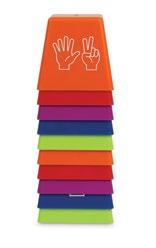 Kids learn early counting, addition and subtraction, and visual math skills as they stack the 10 pyramids and solve 40 math challenges. Four-sided stacking cups feature four ways to count—numbers, tally marks, fingers, and ten frames. Cups measure 2½"L x 2½"W x 2½"H.