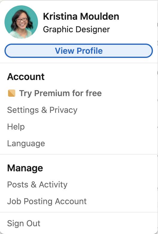 NEXT Go to linkedin.com and log in. Click on Me in the top navigation.