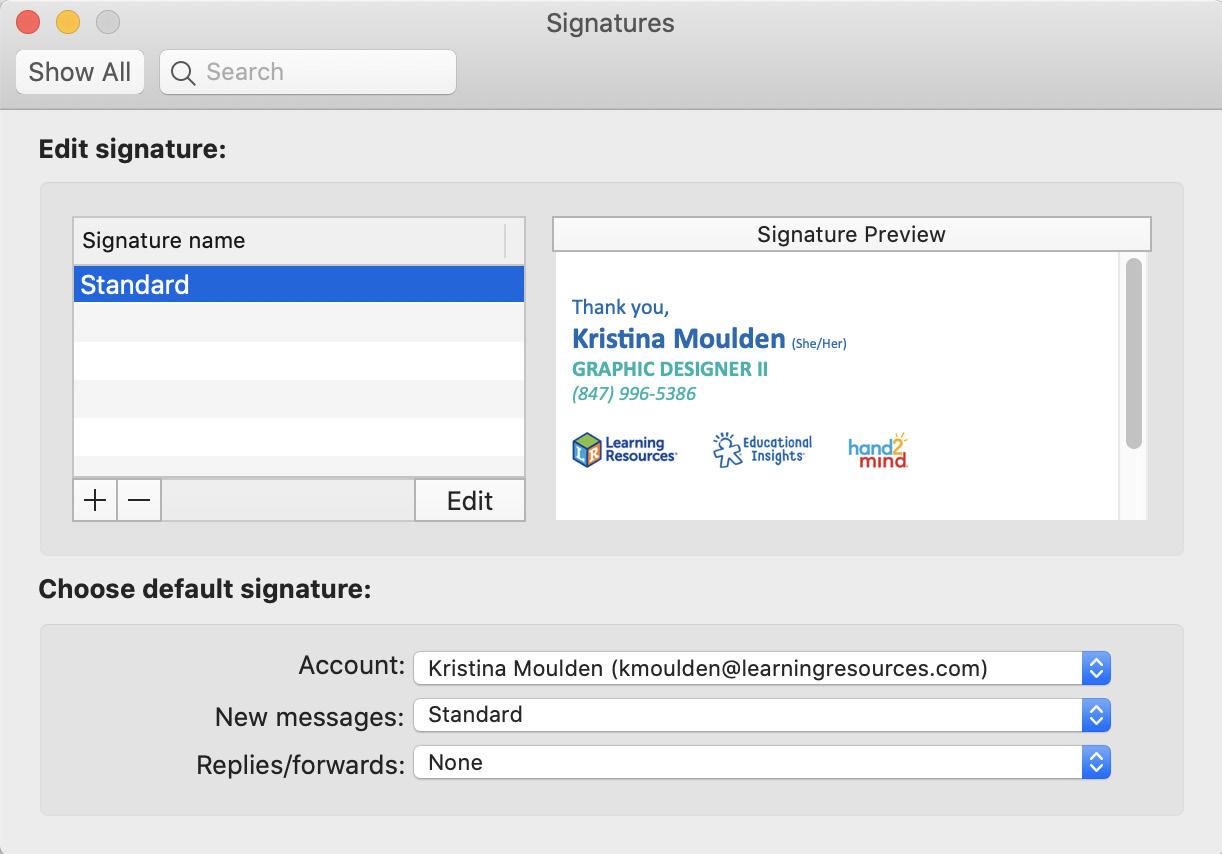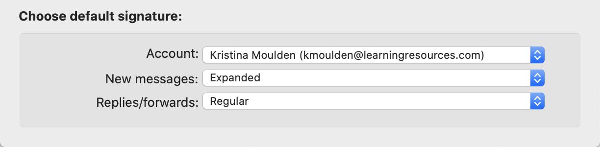 Set your default signature. We recommend using the Expanded signature template for all New Messages and the Regular signature template for all Replies/Forwards.