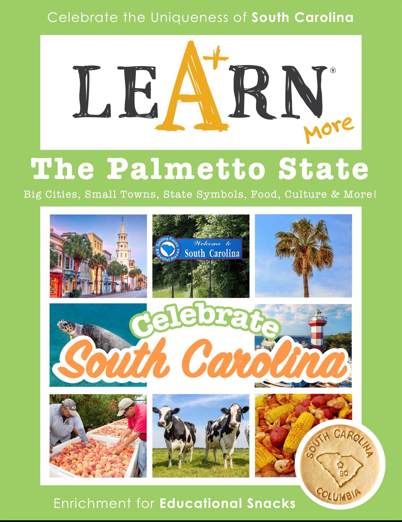 Celebrate SOUTH CAROLINA features 50+ different snacks highlighting state symbols, big cities, small towns, landmarks, agriculture & industry, parks & rec, food & culture!