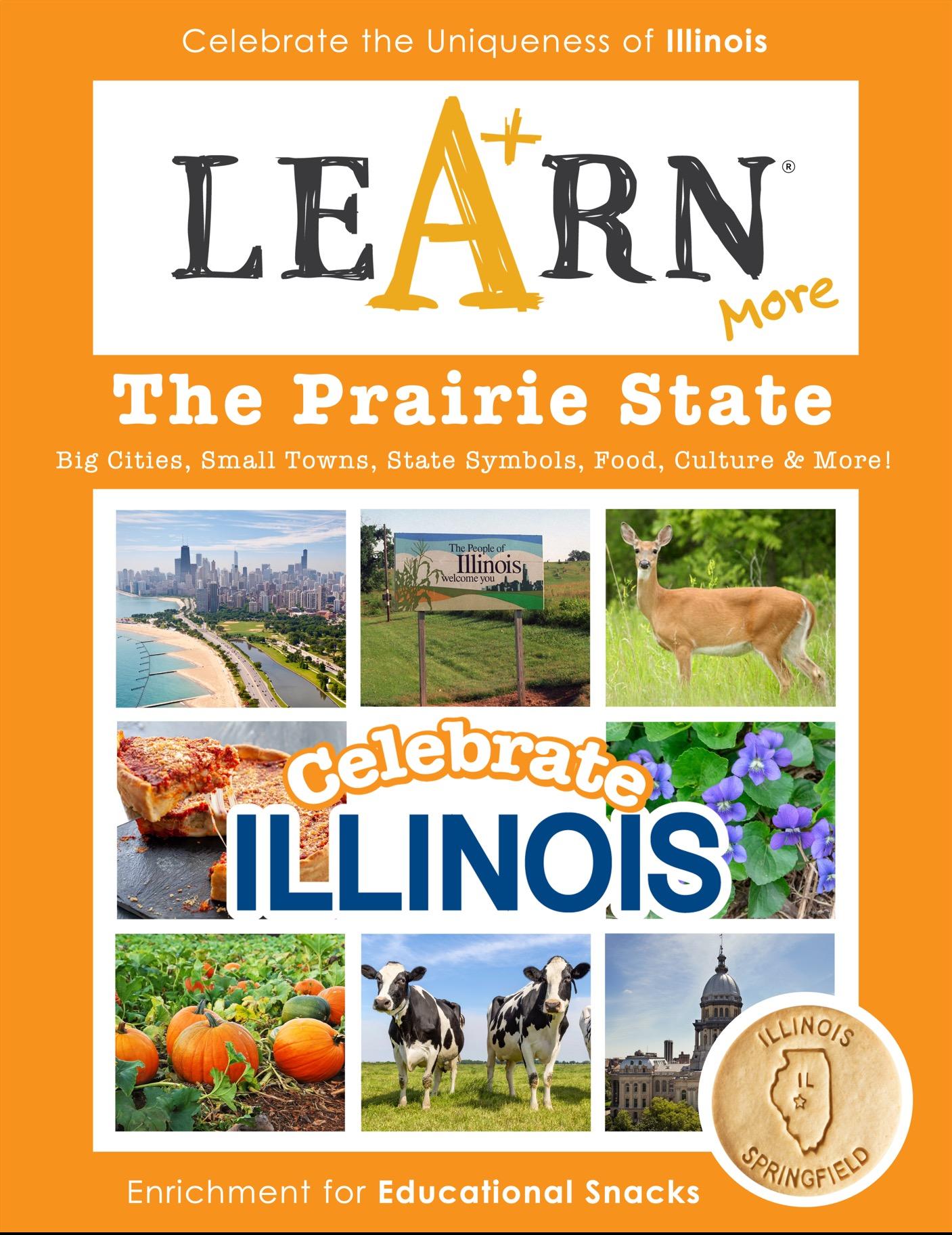 Celebrate ILLINOIS features 50+ different snacks highlighting state symbols, big cities, small towns, landmarks, agriculture & industry, parks & rec, food & culture!