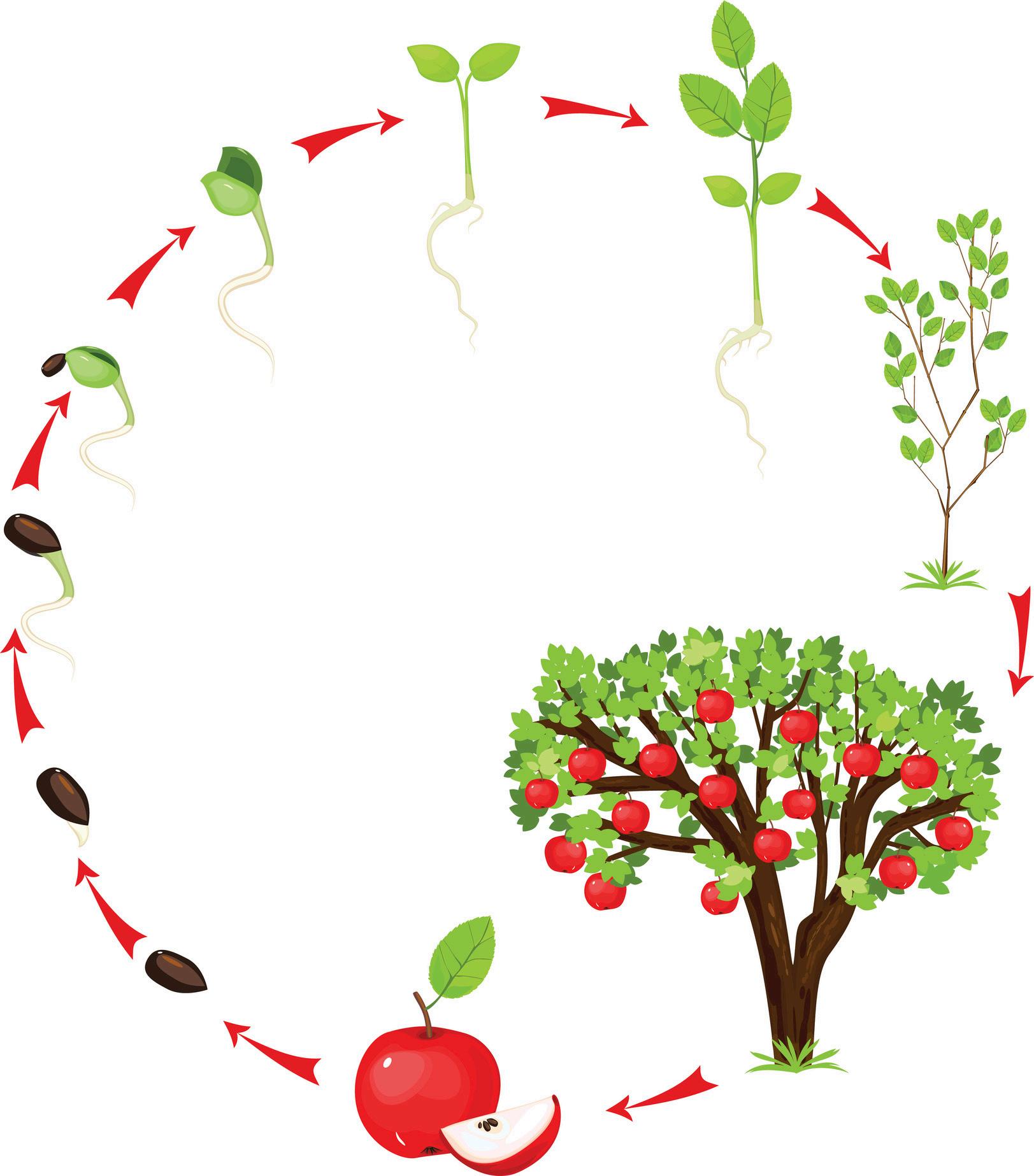 An apple tree takes at least 4 years to start producing fruit.
