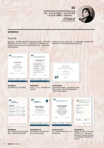 “英语是我想要实现未来梦想而需具备的必要 技能,自从在英孚学习后,我对英语的理解 以及表达能力都得到了大幅的提高。” Mylene Monta, 法国 学生,英孚曼彻斯特学校 www.ef.com.cn/testimonials