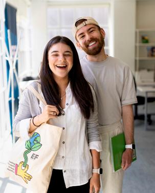 EF campuses and offices are vital parts of our commitment, as well as collaborating with suppliers aligned with our goals. Our dedicated EF Green Teams coordinate global activities engaging staff and students in environmental stewardship, from clean-ups in urban areas, parks, beaches, and rivers to communitydriven projects. As part of our ongoing efforts, we prioritize initiatives like the distribution of reusable water bottles to minimize single-use plastic. We also promote education about sustainability. To this end, we've introduced a new Special Interest Class (SPIN) focused on Sustainability & Social Impact.