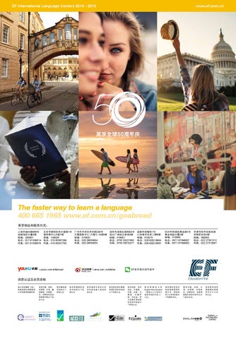 The faster way to learn a language 400 665 1965 www.ef.com.cn/goabroad 英孚地址和联系方式: 上海市福州路666号 金陵海欣大厦3楼 邮编:200001 电话:021 61336014 传真:021 61336070
