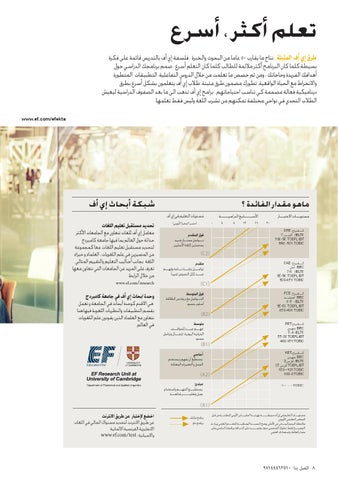 ﻃﺮق إي أف اﻟﻤﺜﺒﺘﺔ .ﻧﺘﺎج ﻣﺎ ﻳﻘﺎرب ٥٠ﻋﺎﻣﺎ ﻣﻦ اﻟﺒﺤﻮث واﻟﺨﺒﺮة .ﻓﻠﺴﻔﺔ إي أف ﺑﺎﻟﺘﺪرﻳﺲ ﻗﺎﺋﻤﺔ ﻋﻠﻰ ﻓﻜﺮة ﺑﺴﻴﻄﺔ:ﻛﻠﻤﺎ ﻛﺎن اﻟﺒﺮﻧﺎﻣﺞ أﻛﺜﺮ ﻣﻼﺋﻤﺔ ﻟﻠﻄﺎﻟﺐ ﻛﻠﻤﺎ ﻛﺎن اﻟﺘﻌﻠﻢ أﺳﺮع .ﺻﻤﻢ ﺑﺮﻧﺎﻣﺠﻚ اﻟﺪراﺳﻲ ﺣﻮل أﻫﺪاﻓﻚ اﻟﻔﺮﻳﺪة وﺣﺎﺟﺎﺗﻚ ،وﻣﻦ ﺛﻢ ﺧﺼﺺ ﻣﺎ ﺗﻌﻠﻤﺖ ﻣﻦ ﺧﻼل اﻟﺪروس اﻟﺘﻔﺎﻋﻠﻴﺔ ،اﻟﺘﻄﺒﻴﻘﺎت اﻟﻤﺘﻄﻮرة واﻻﻧﺨﺮاط ﻣﻊ اﻟﺤﻴﺎة اﻟﻮاﻗﻌﻴﺔ .ﺗﻄﻮرك ﻣﻀﻤﻮن.ﻃﺮق ﻣﺜﺒﺘﺔ .ﻃﻼب إي أف ﻳﺘﻌﻠﻤﻮن ﺑﺸﻜﻞ أﺳﺮع ﺑﻄﺮق دﻳﻨﺎﻣﻴﻜﻴﺔ ﻓﻌﺎﻟﺔ ﻣﺼﻤﻤﺔ ﻛﻲ ﺗﻨﺎﺳﺐ اﺣﺘﻴﺎﺟﺎﺗﻬﻢ .ﺑﺮاﻣﺞ إي أف ﺗﺬﻫﺐ اﻟﻰ ﻣﺎ ﺑﻌﺪ اﻟﺼﻔﻮف اﻟﺪراﺳﻴﺔ ﻟﻴﻌﻴﺶ اﻟﻄﻼب اﻟﺘﺤﺪي ﻓﻲ ﻧﻮاﺣﻲ ﻣﺨﺘﻠﻔﺔ ﺗﻤﻜﻨﻬﻢ ﻣﻦ ﺗﺸﺮب اﻟﻠﻐﺔ وﻟﻴﺲ ﻓﻘﻂ ﺗﻌﻠﻤﻬﺎ. www.ef.com/efekta