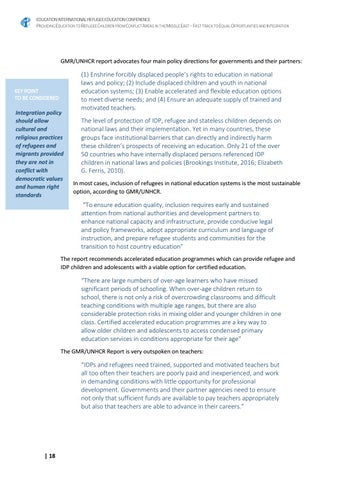 GMR/UNHCR report advocates four main policy directions for governments and their partners: