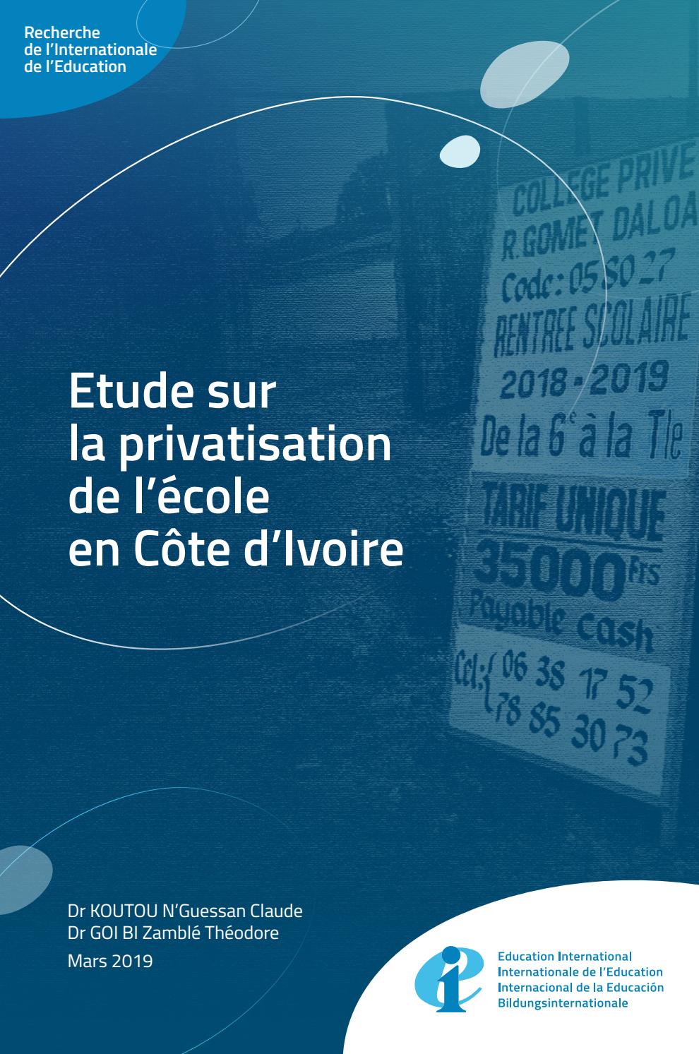 Etude sur la privatisation de l’école en Côte d’Ivoire Dr KOUTOU N’Guessan Claude Dr GOI BI Zamblé Théodore Mars 2019