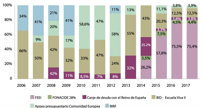 Además del Banco Mundial y el BID, la Organización de Estados Iberoamericanos (OEI) también jugó un rol relevante en la promoción de la educación inicial y la capacitación docente, así como en la introducción de aspectos constructivistas en el currículum. La OEI tuvo también un rol importante gestionando fondos, principalmente de la Agencia Española de Cooperación Internacional para el Desarrollo (AECID), dirigidos a educación, en especial a la educación de personas jóvenes y adultas. El programa PRODEPA (2002-2012) es un ejemplo de esta cooperación. La reforma educativa, por lo tanto, contó tanto con el impulso y la participación de actores del país organizados en consejos como el CARE/CONEC, como con la influencia, a través de préstamos y de ideas y proyectos de política concretos, de organismos internacionales y universidades extranjeras de élite.