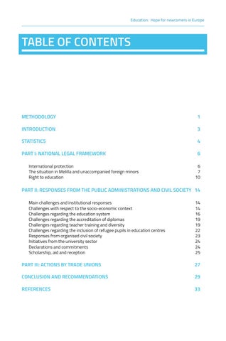 METHODOLOGY 1 INTRODUCTION 3 STATISTICS 4 PART I: NATIONAL LEGAL FRAMEWORK International protection The situation in Melilla and unaccompanied foreign minors Right to education