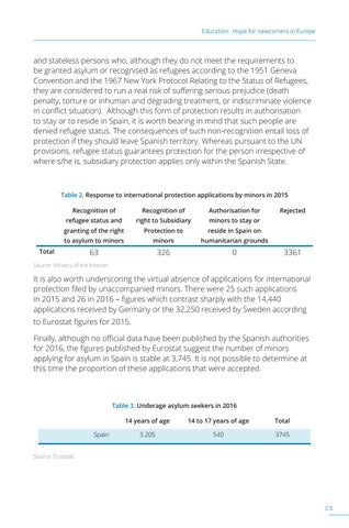 Table 2. Response to international protection applications by minors in 2015 Recognition of