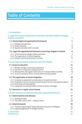 2.2. Legal and organisational framework concerning refugees in schools 2.2.1. School access for refugee children and youth 2.2.2. The organisation of school integration 2.2.3. Policies concerning interaction in schools