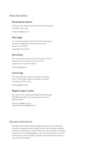 Sonia Grigt PhD candidate (Comparative Education, University Rome 2-Tor Vergata, Italy), Consultant, Education International, Rome, Italy. sonia.grigt@ei-ie.org