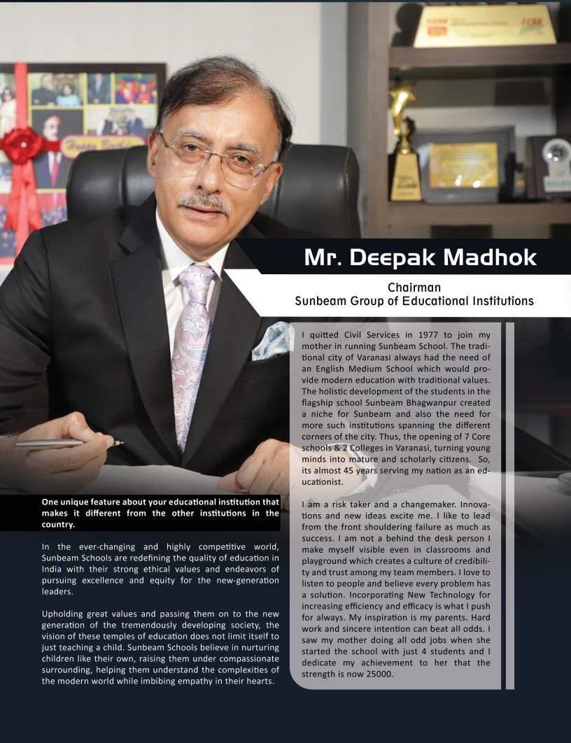 embarked themselves on challenging journey to make a meaningful impact on the lives of the educators as well as building the leaders of Tomorrow. Educa on being the chief ingredient to build a na on successful by se ng an example in almost all walks of life.
