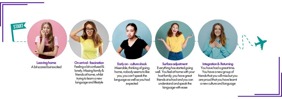 When accepted into the program students experience a tremendous amount of excitement. This sense of wellbeing generally continues upon arrival in their new country as, initially, students may be the ‘centre of attention’ at their school.