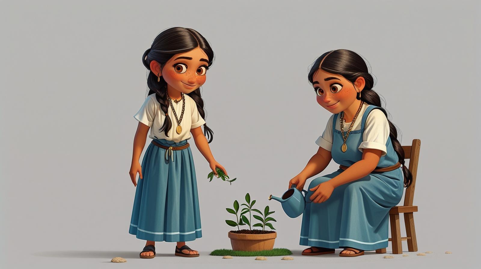 Caminando de regreso Agato, María vio a la señora Luna, una anciana que tenía un pequeño jardín. Estaba triste porque el viento había arrancado las flores que preparaba para vender.