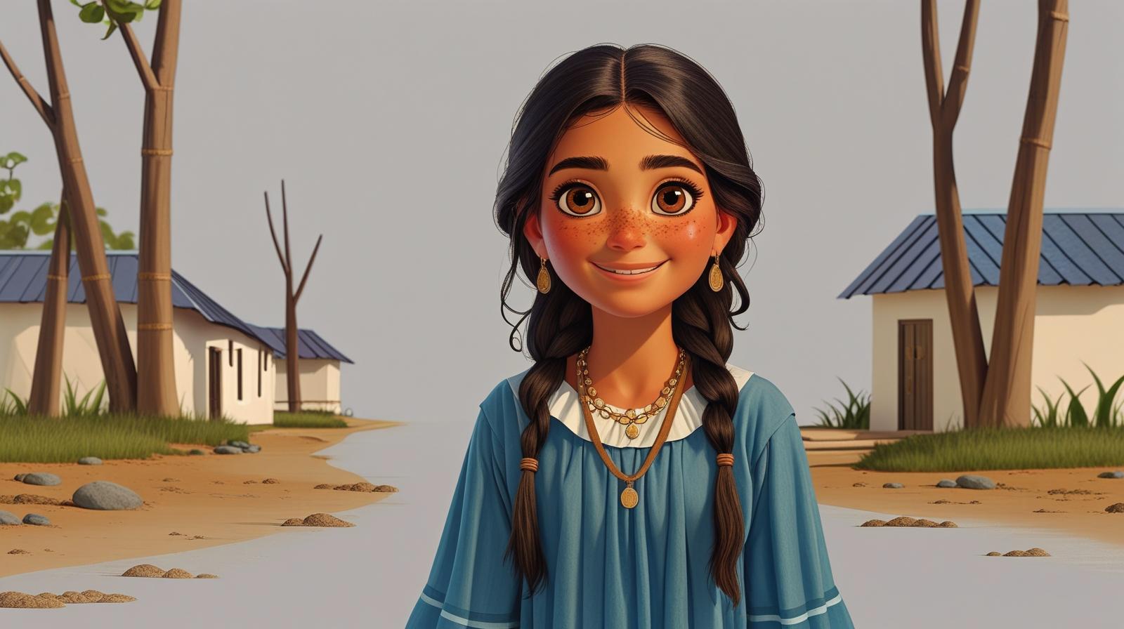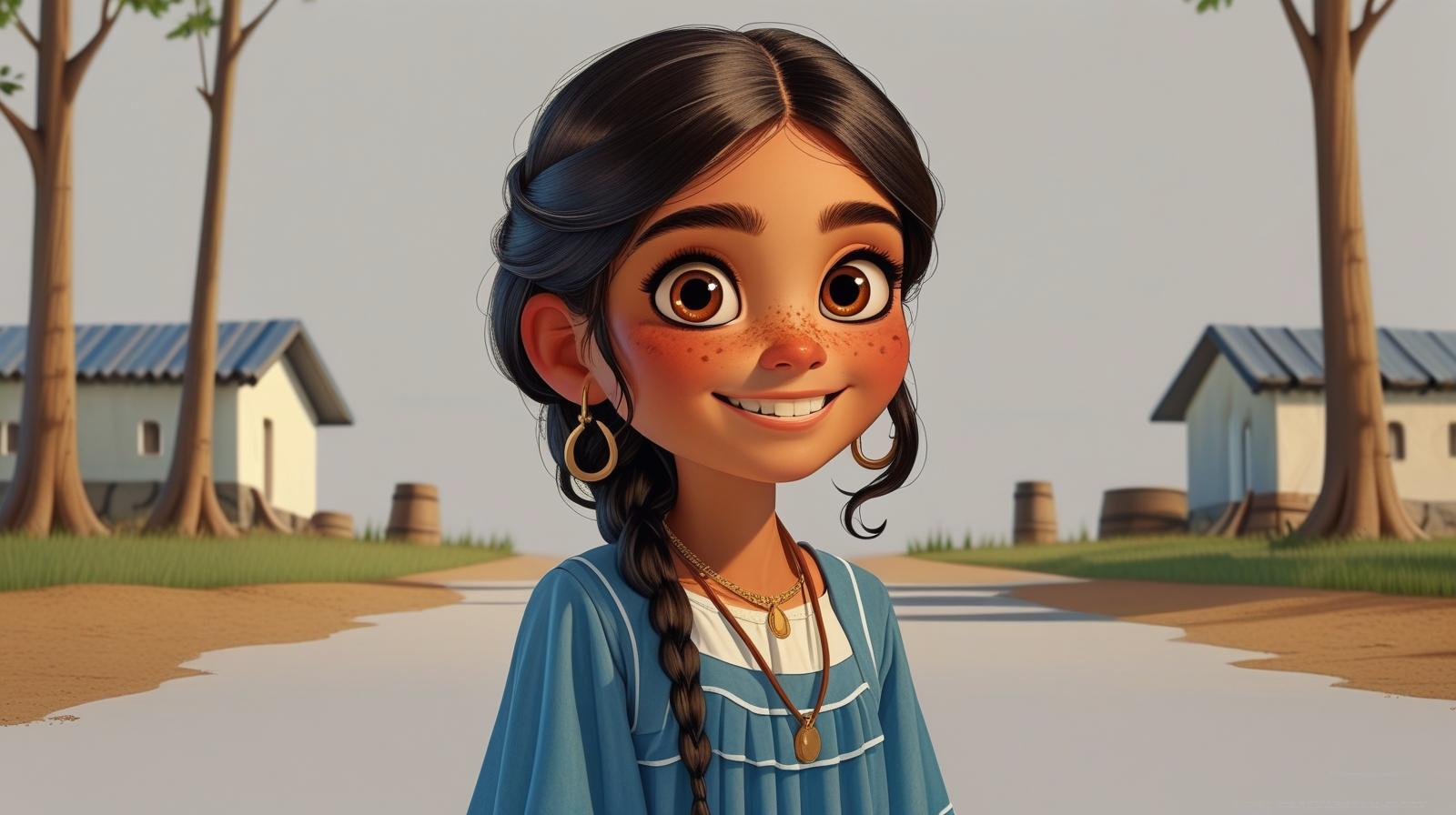 Había una vez una niña llamada María, que vivía en Agato pueblito lleno de árboles altos y senderos de tierra dorada. María era conocida por todos porque siempre tenía una sonrisa enorme y ojos que brillaban como estrellas.