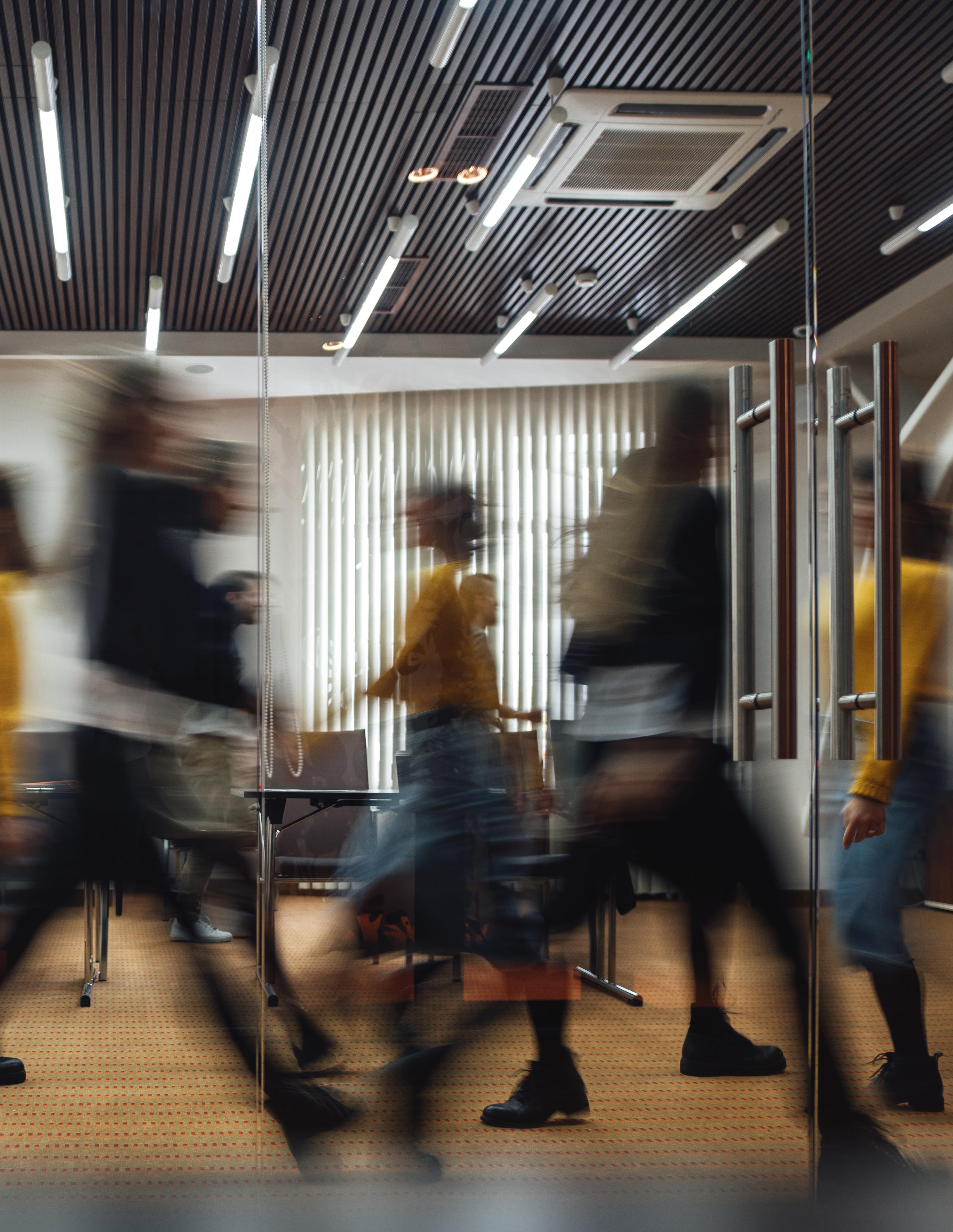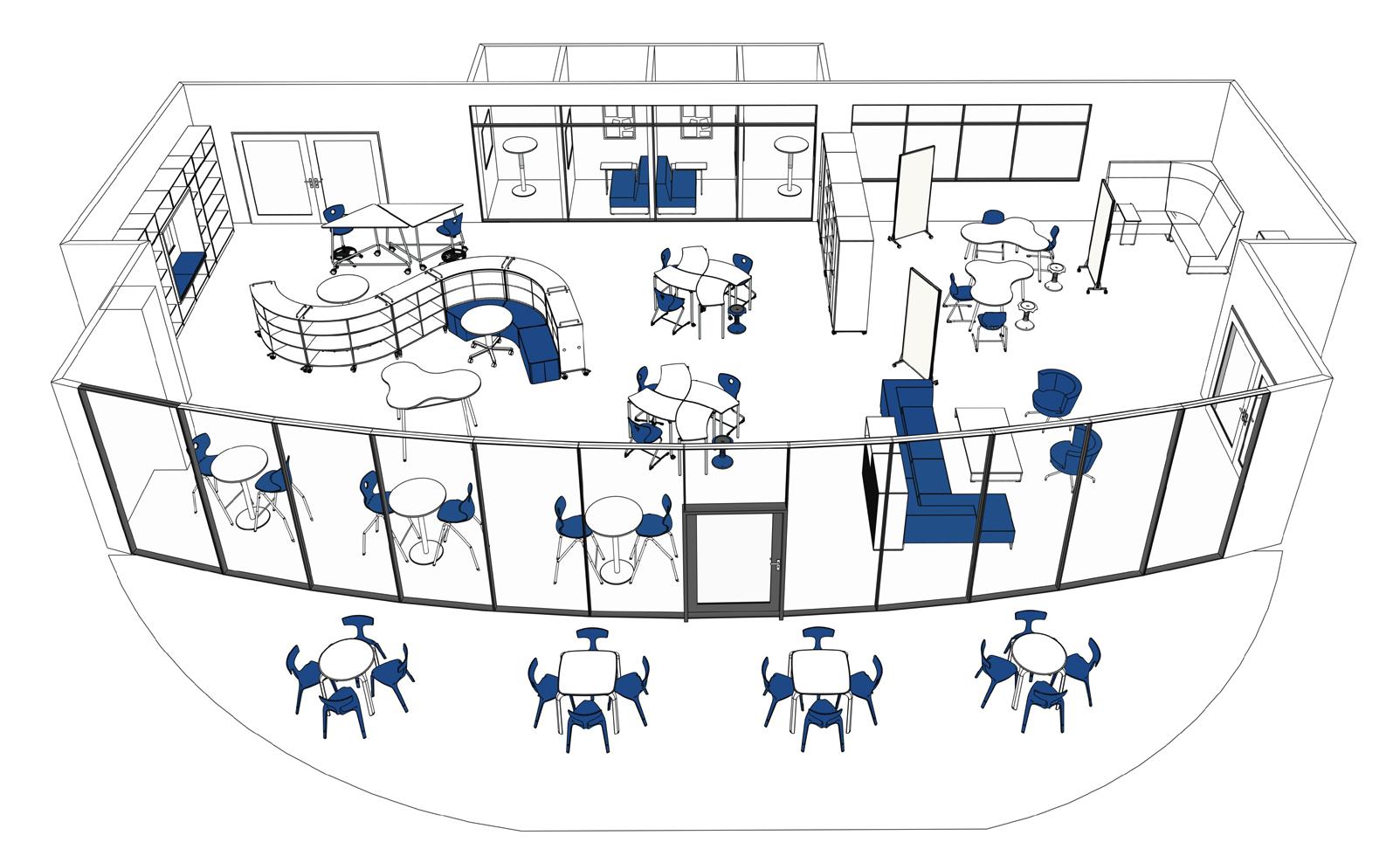 Create spaces that can be individually personalized or adapted to group-speci c t asks and do not force student s into rigid work st andards. Key focus: multi-space concept . Flexible partition walls for different room arrangement s are helpful here. These movable elements make it possible to divide an open area into individual zones for diffe rent variable uses (team / individual work). In addition, if all t ables, chairs, and cabinet s are mobile and there is suf cient practical infra structure in place, nothing stands in the way of a fast and functional redesign.
