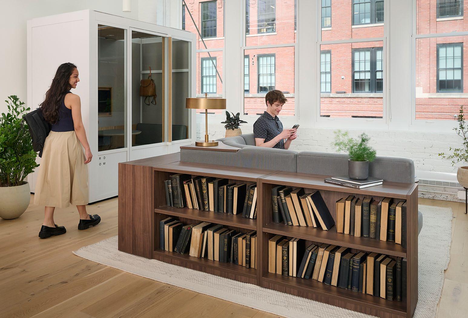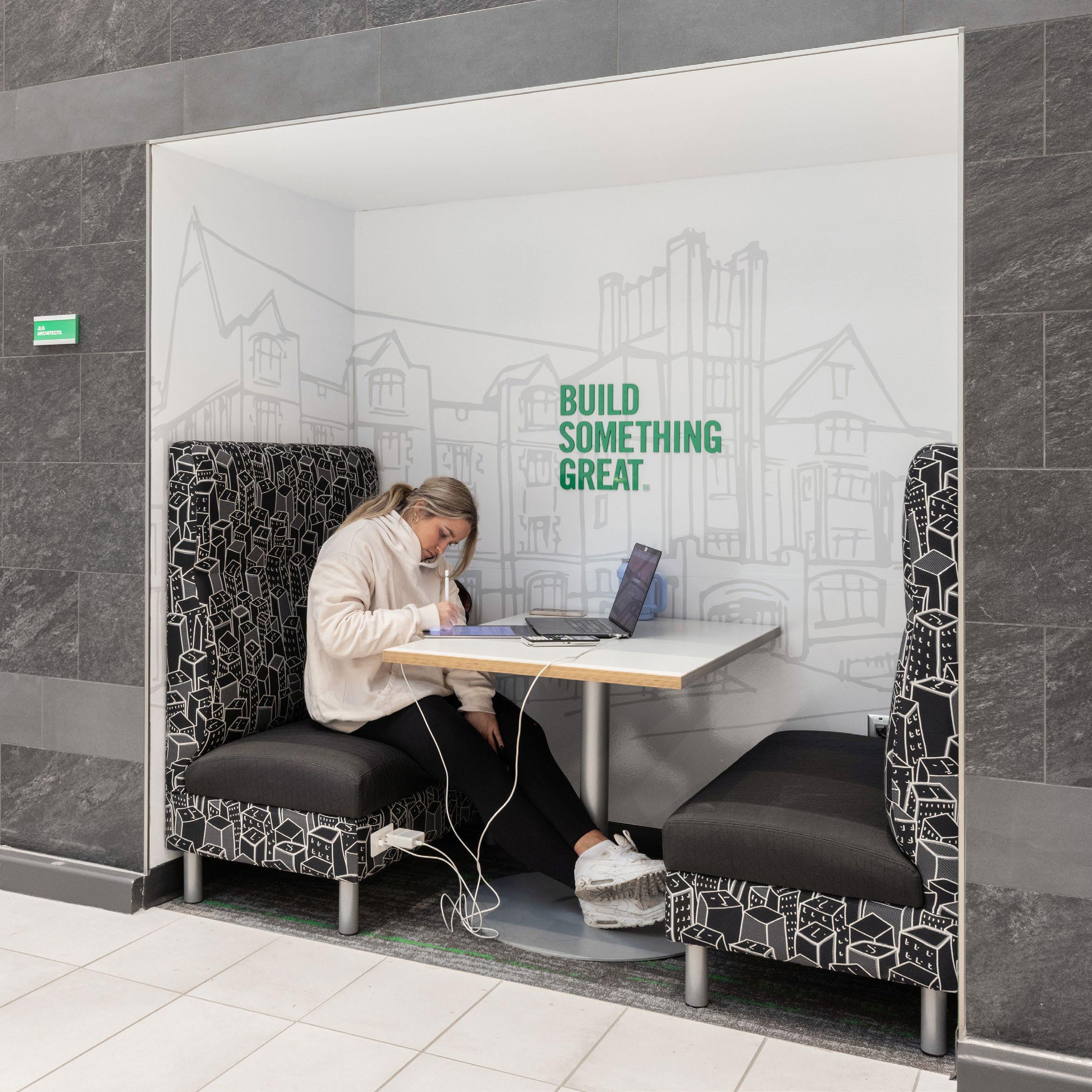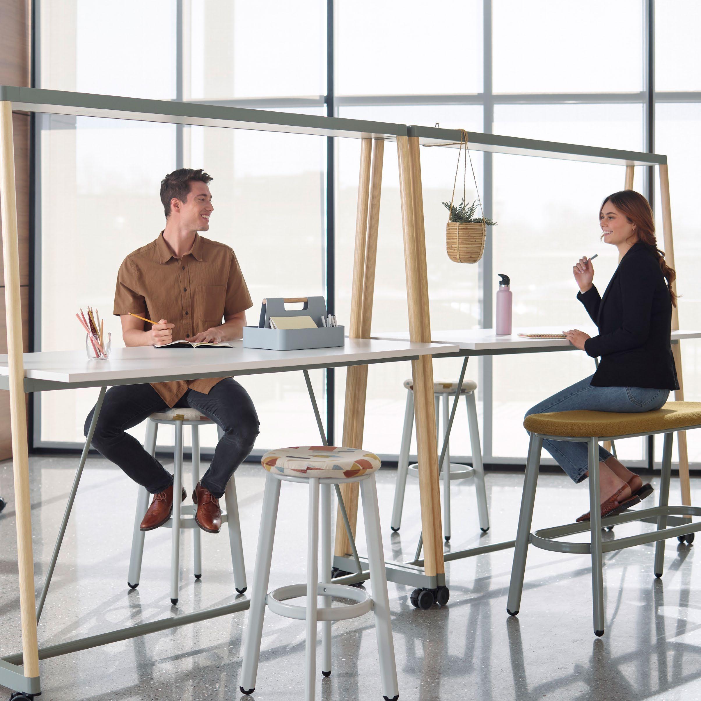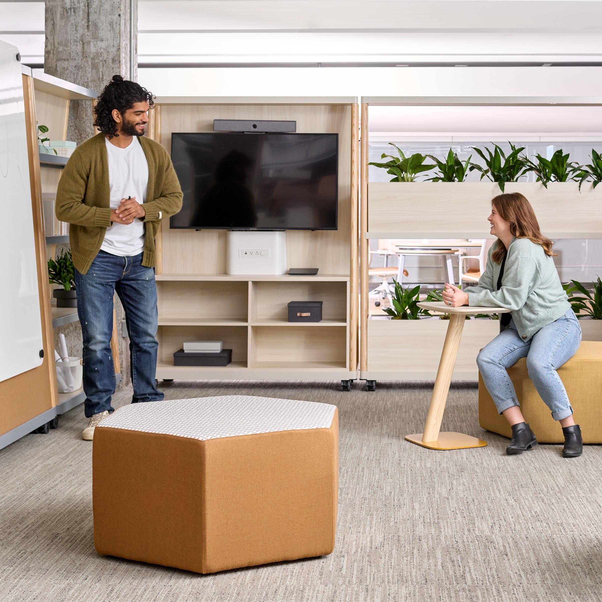 Obeya flexible framework, Hinchada modular lounge, Boost ottoman, Kosa occasional Café + common areas Learning + classroom Library + study spaces