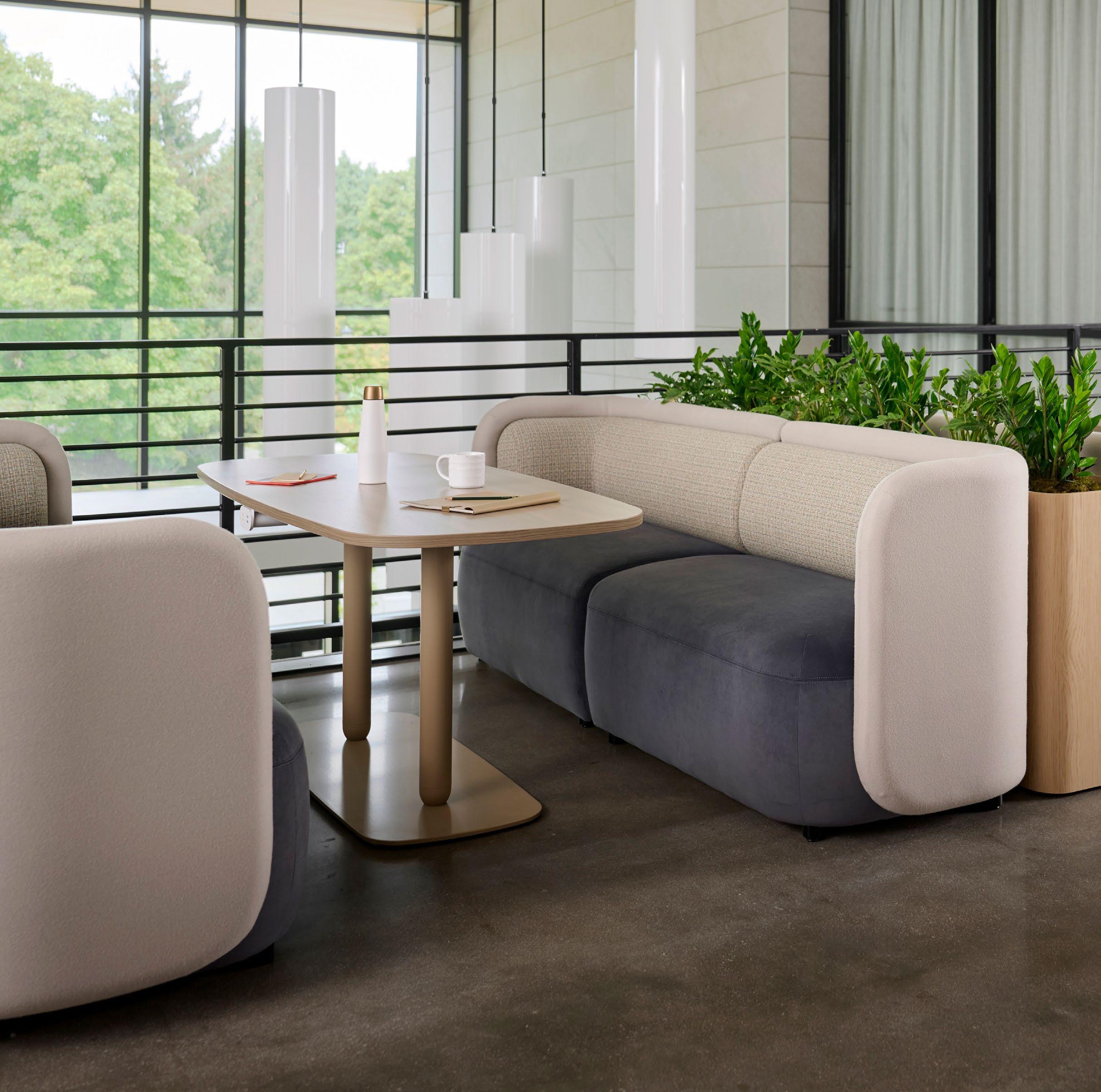 Gathr modular lounge, Heya pull-up table, Kaleid media, Noé bench by Carolina