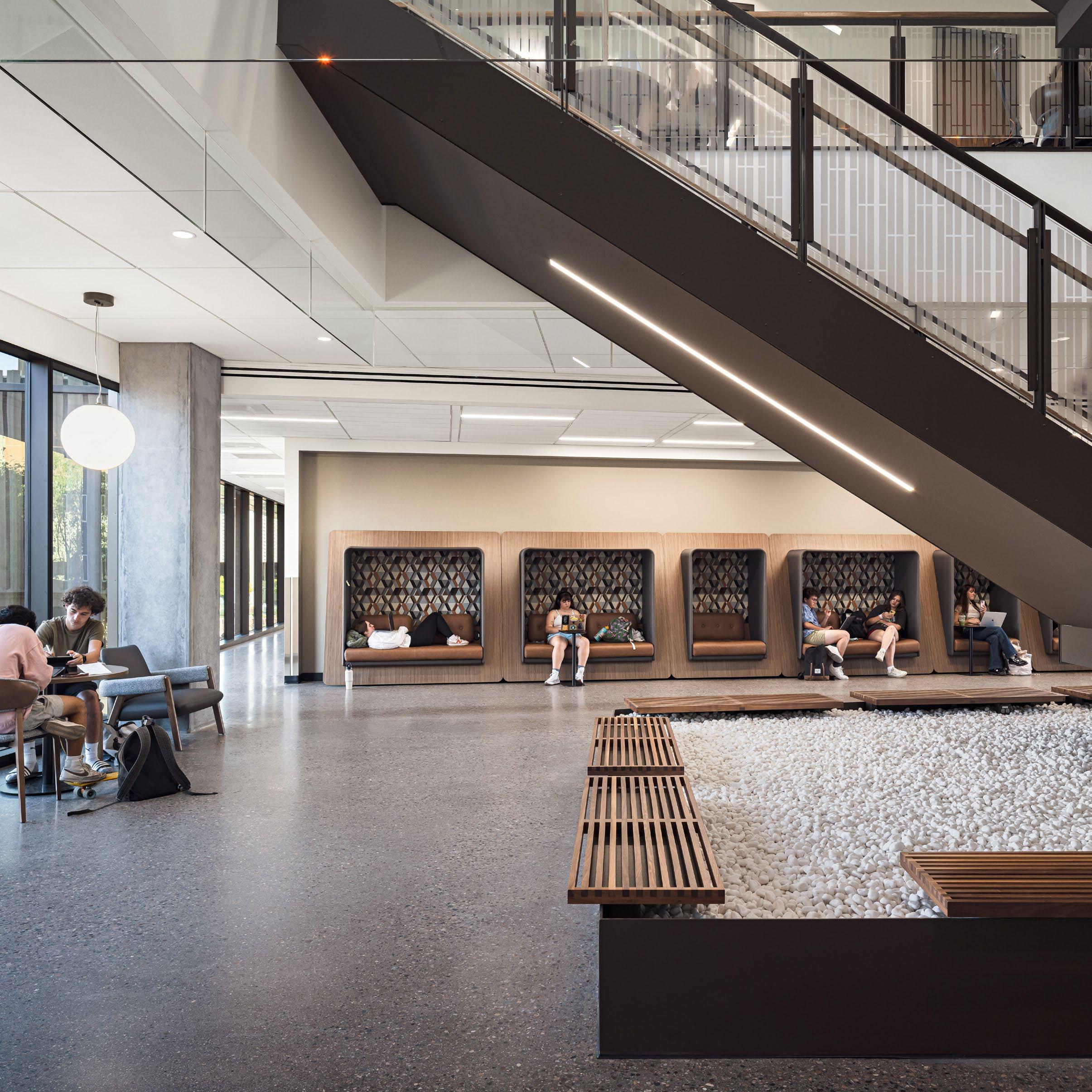 More and more students are drawn to places designed around them—spaces that allow them to interact, focus, and learn alongside each other. Informal social spaces between office and instruction areas become hotspots of activity and curiosity. Environments that encourage learning outside of class allow students to collaborate, build relationships, and feel part of a community.