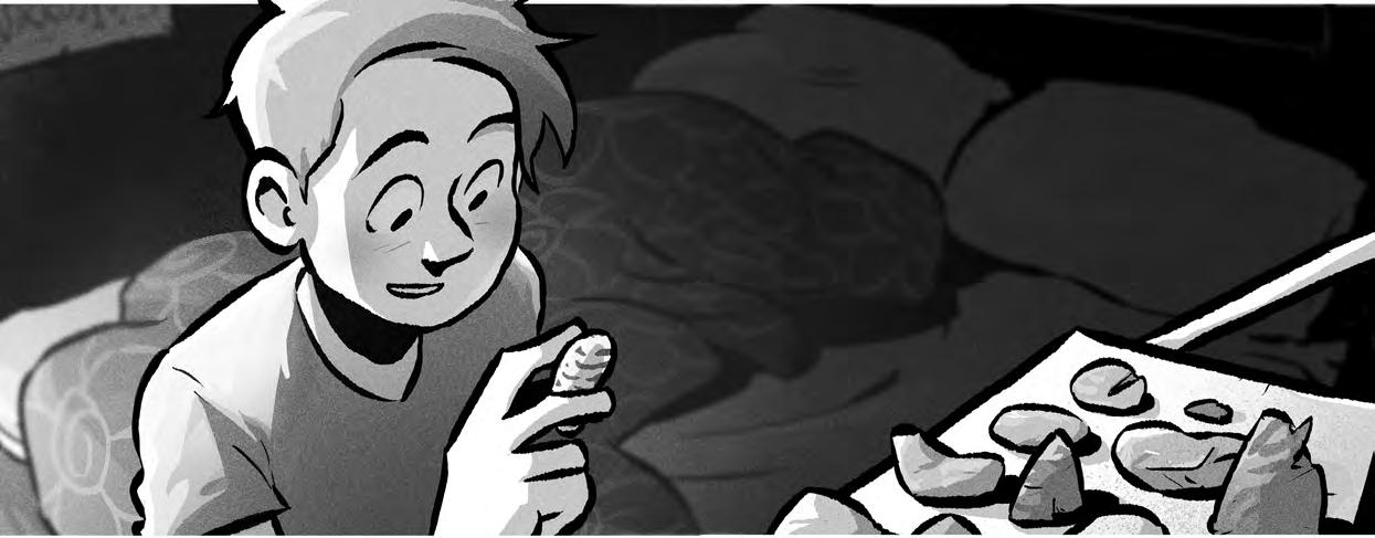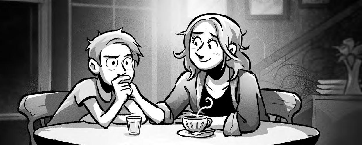 s. 96–99 Ote teoksesta Eva Amores ja Matt Cosgrove 2022 (suomentanut Anssi Alanen 2023): Karsein viikko ikinä. Tiistai. Sivut 14–17. Otava.