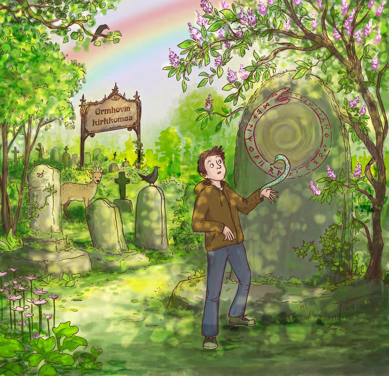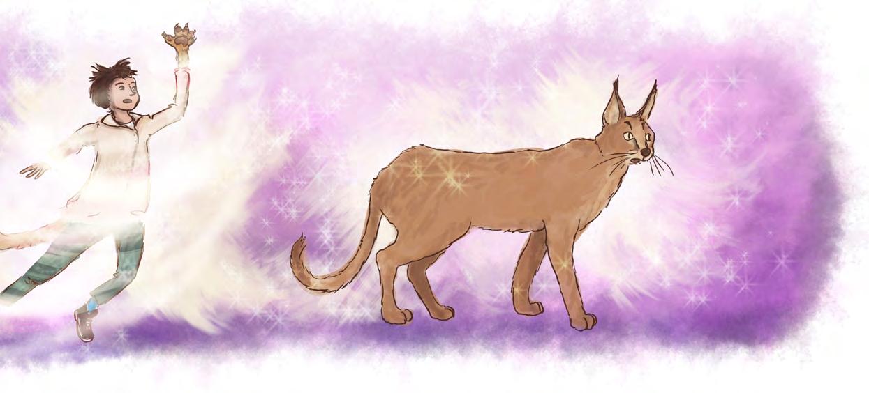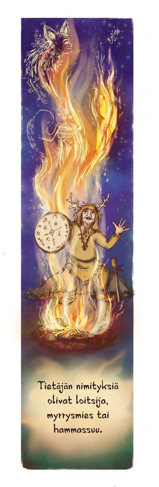 s. 65–68 ja 164–166 Ote teoksesta Helena Immonen 2024 (selkomukautus Riikka Tuohimetsä 2025): Purppurausvan animaagit. Karakalin voima. Tammi.