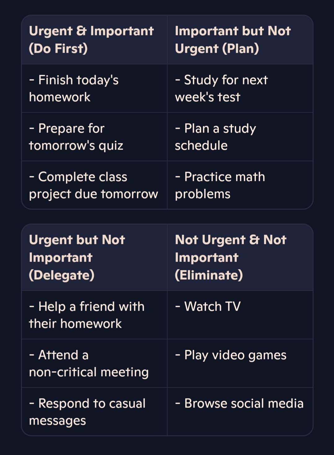 Purpose: Guide learners to distinguish between urgent and important tasks.