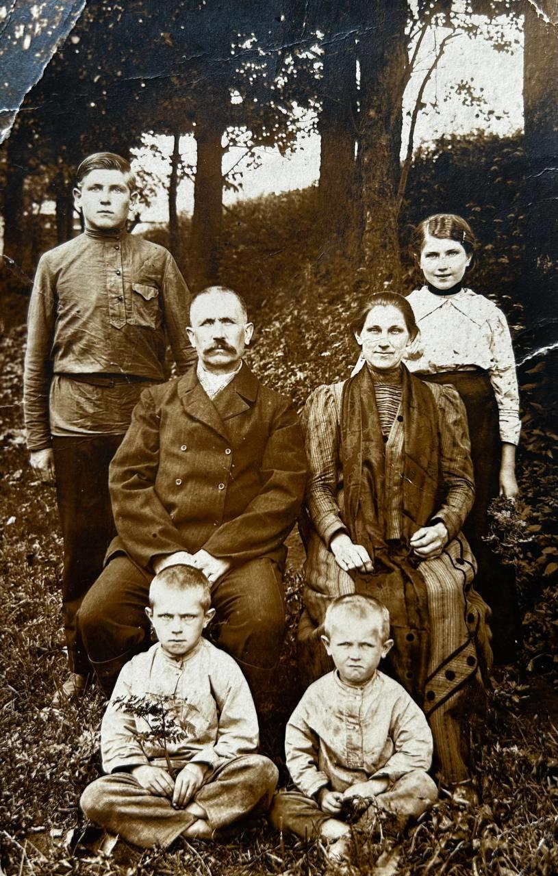 Šioje nuotraukoje yra nufotografuoti mano giminaičiai. Jos centre sėdi mano proproprosenelis Vikentijus su žmona Emilija, šalia stovi jų vaikai. Nuotrauka buvo padaryta Pirmojo pasaulinio karo metais, kai Lietuvos gyventojų gyvenimas buvo sunkus, nes 1915 metais Vokietija užėmė Lietuvos teritoriją, todėl mano giminaičiams teko pasitraukti į Smolenską (tuometinę carinės Rusijos imperiją). Ši nuotrauka buvo padaryta pakeliui į Smolenską, Uzlos mieste.
