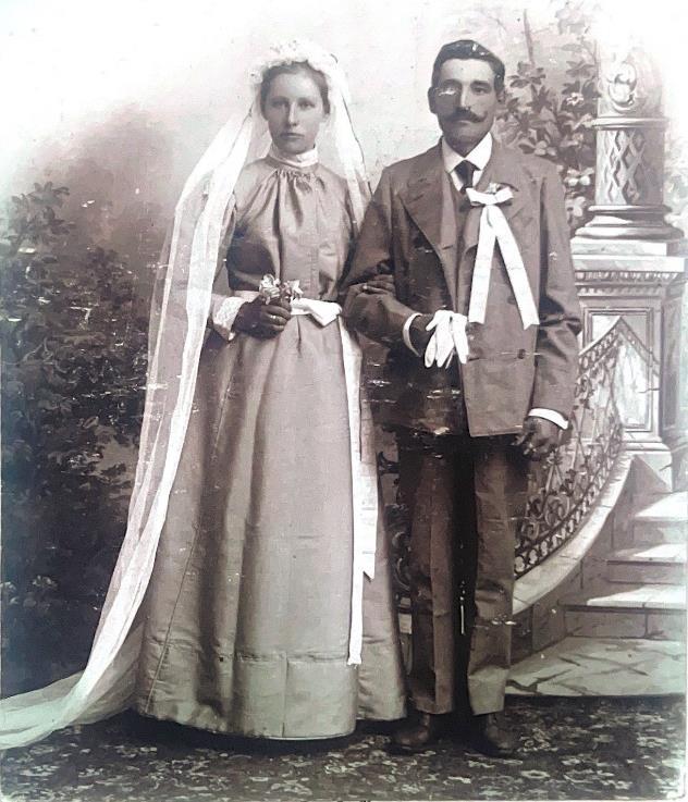 Šią fotografiją radau sename šeimos albume, tačiau ji svarbi ne vien mūsų giminės istorijai. Joje galima įžvelgti ir dvidešimtojo amžiaus pradžios technologinę pažangą, ir tuometinės Lietuvos kultūros požymių, kaip rengdavosi ir pozuodavo jaunavedžiai.