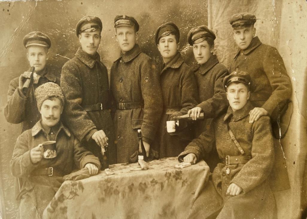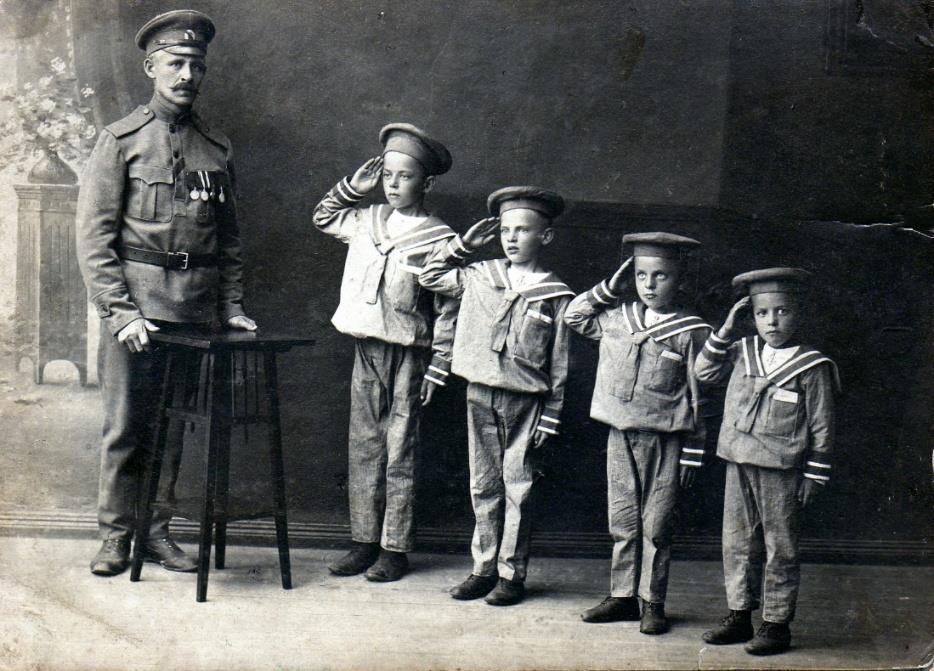 Nuotrauka daryta 1915–1916 metais tuometiniame Mitau (Mintauja, dab. Jelgava) mieste, Latvijoje, ten išvykusi prieš Pirmąjį pasaulinį karą mano proprosenelio šeimyna ieškojo geresnio gyvenimo. Nuotraukoje pirmas iš kairės stovi mano proprosenelis Augustas Žvirblis (1880–1955), apsi-rengęs karine uniforma, papuošta ordinais.