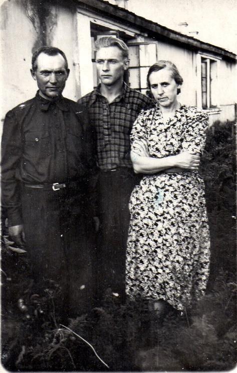 Senelis Algimantas (viduryje) su tėvais Kemerove, 1953 m.