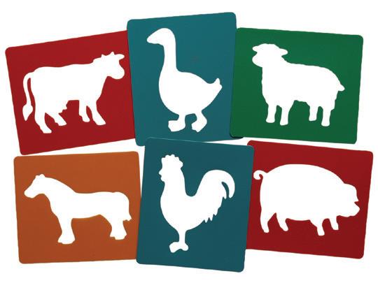 11 different sorts including Cows, Sheep, Geese, Chickens etc. Carefully finished and attractively coloured, the sizes of the creatures range from 40 to 75mm and as well as being entertaining for children they can be used for counting and sorting exercises. Not to scale.