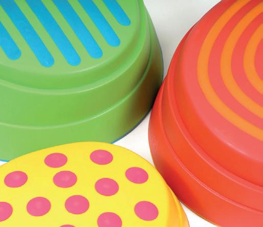 Set of 5 large and 5 small textured circles made from ultra-soft flexible silicone. On the surface of each circle is a pattern which is distinctive and different from the rest of the set. Placing the small circles into the feely bag provided, they can see if they can describe or predict the pattern. Using their feet they can walk over the circles to see if they can tell them apart. Hand or dishwasher washable. Circles 5 x 350mm dia. 5 x 80mm dia.