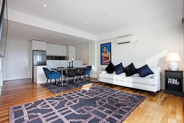 Offering stunning city and bay views, this exceptional two bedroom apartment features bright open plan living/dining, floor-to -ceiling windows, and stone-enhanced kitchen Generous robed bedrooms, central bathroom/euro-laundry, heating and cooling, secure entry, intercom, car space, and access to resident gym, sauna and sky deck.