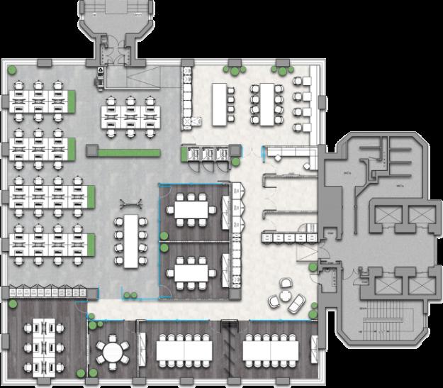 Workingwiththeuniquequalitiesofthebuildingandopeningupsectionsoftheinterior spaceallowsoccupantsaccesstonaturallight,viewsandairflowthroughoutthebuilding. Thisisachievedinthreeparts: