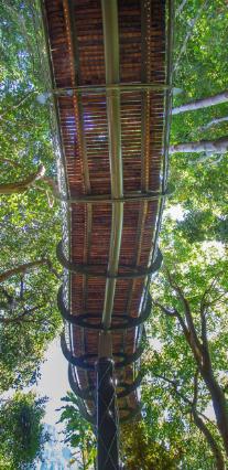 TheFloating AuditoriumwasinfluencedbytheformofMajestyPalm(RaveneaRivularis) whichcancreatelargestrongplanesofcoverwithoutblockinglightandair.Thestepsofthe auditoriummimicthebladeoftheMajestyPalm,offsetandoverlappingcreatingalarge solidsurfacefromaboveandaseriesofthinfinswhenseenfromtheground.