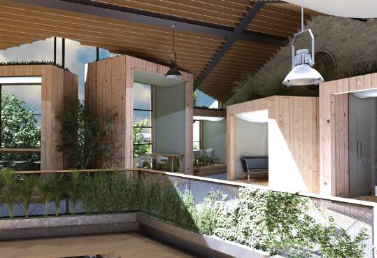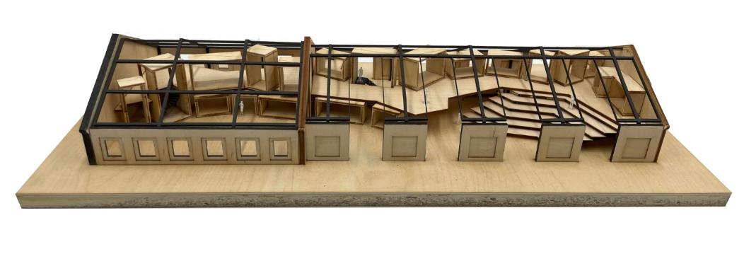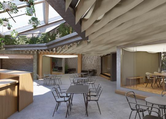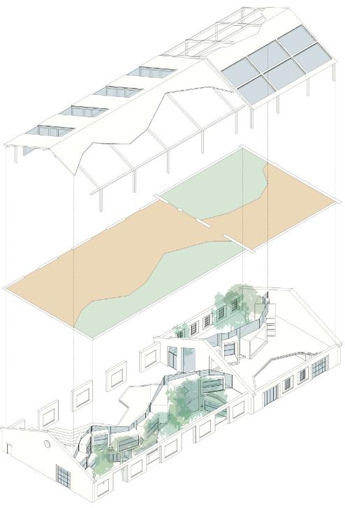 Thedesignisacommunityfocusedopenworkspace,thatplays onthehistoricalpresenceofthesitethatwasoncetheheartof athrivingworkingcommunity.Re-purposingandregeneratingthe buildingintoahubthatpromotesconnectionandcollaboration afterthepandemicwhilstalsolettingpeopleconnectwithhistory andnatureinoneplace.